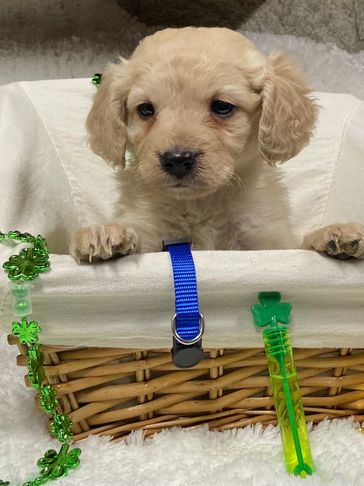 Gideon is aprox 22 lbs, very adorable, sweet and gentle pocket sized boy. He can throw all sortst of colors including red. He can also throw pocket, toy and miniature sized pups depending on the female he is paired with. Gideon is aprox 63.5% golden.