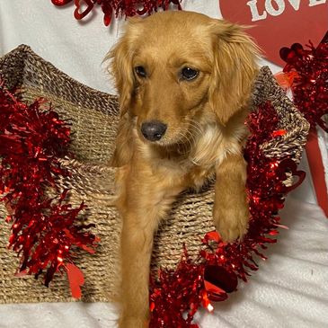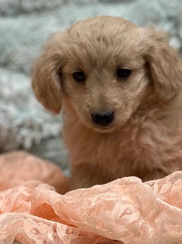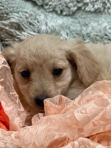 Sosha is a beautiful English Cream Miniature Golden Retriever. She exibits that highly sought after, very light almost "white" color. Sosha weighs aprox 32 lbs P.S. this particular mating is also being done in France!