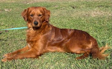 He is a Miniature English Cream golden, with his size at about 36 lbs,we will maybe get to use him for pocket english cream goldens but he is not genetically likely to ever throw miniature red goldens. Lukey came from Taylormade Miniature Goldens and is roughly 65% golden.