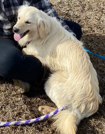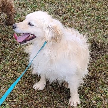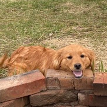 Scotty is a gorgeous, 38 lb (aprox) Miniature English cream golden retriever male. Scotty actually has thrown pocket english cream golden puppies when paired with the right female. If we tried to use him for a miniature red golden, the closest we would likely achieve would be gold. Scotty is happy , playful and very silly. He is very "b